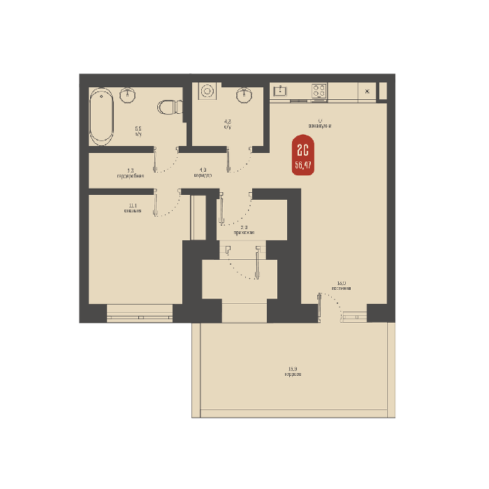3Е-комнатная