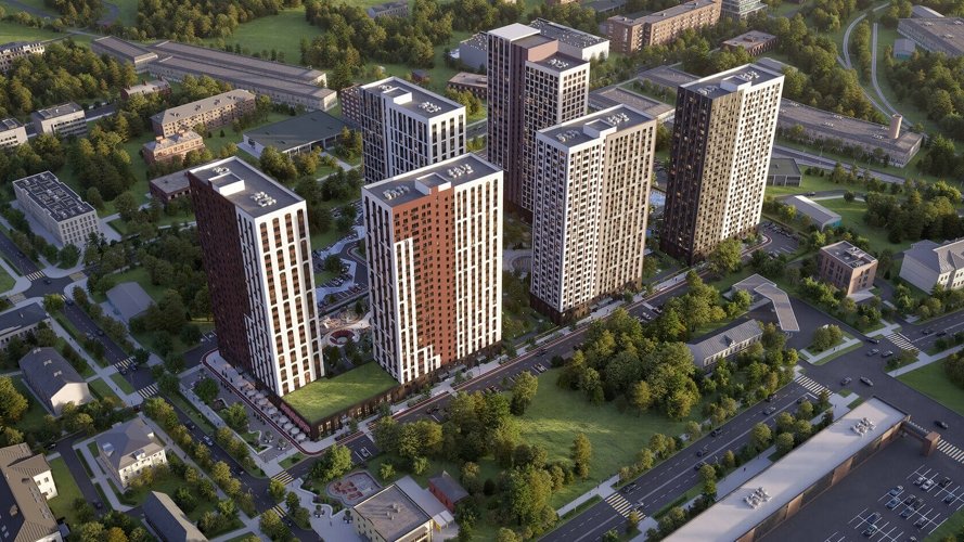 Состоящий из 5 современных 26-этажных домов, построенных по технологии монолит с кирпичным заполнением, квартал будет самым высоким и впечатляющим комплексом в городе.