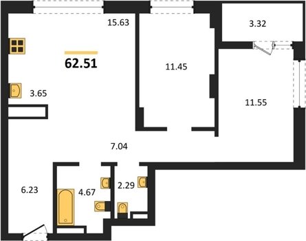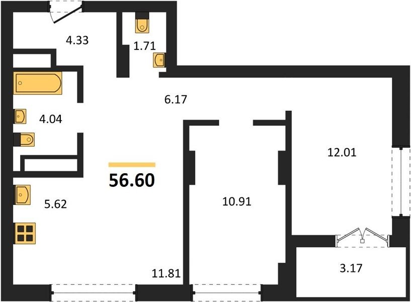 Площадь от 56.60 м2