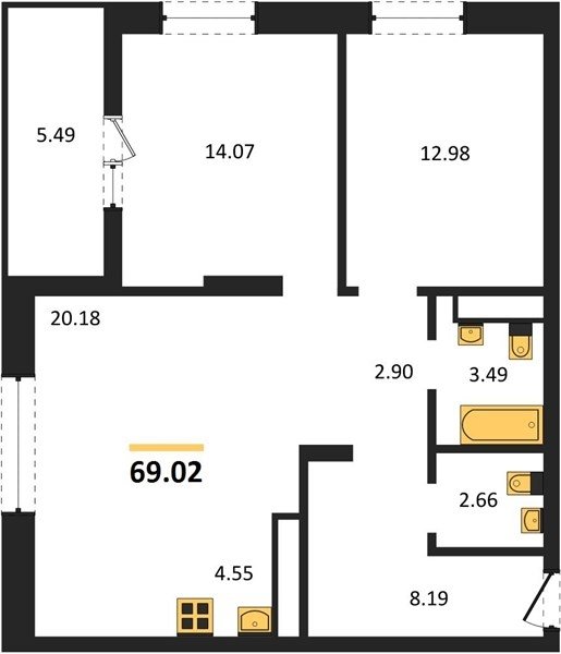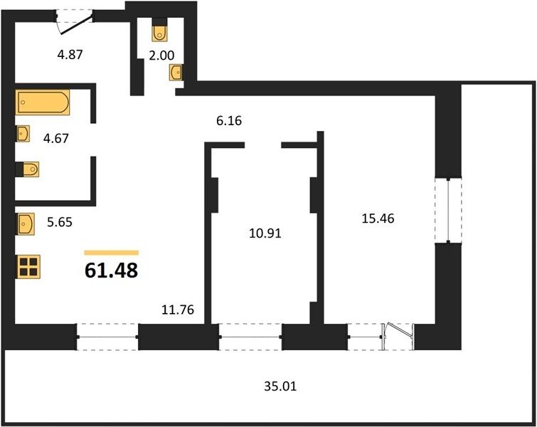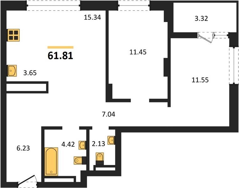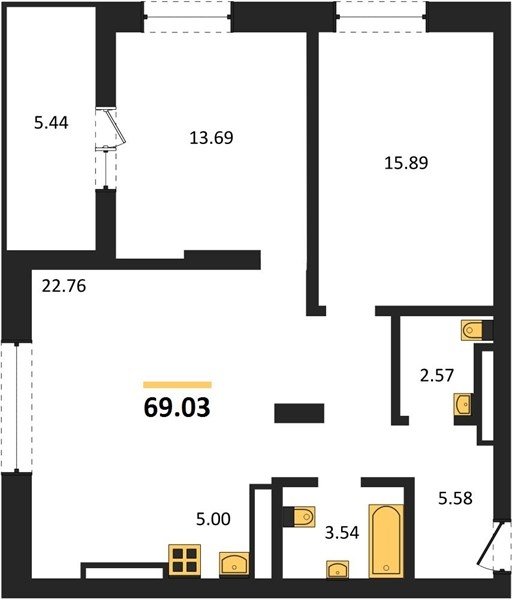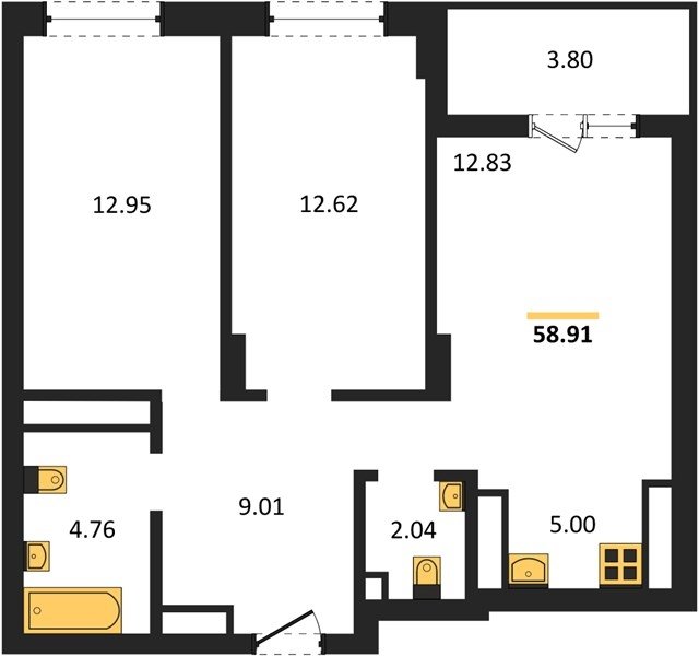 Площадь от 58.81 м2