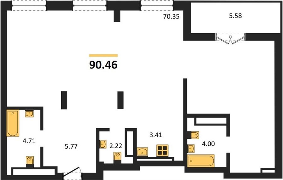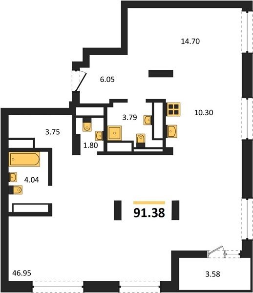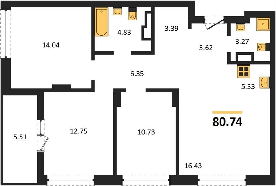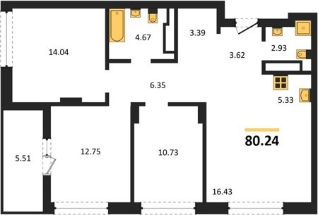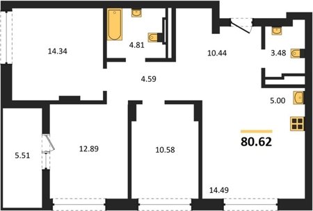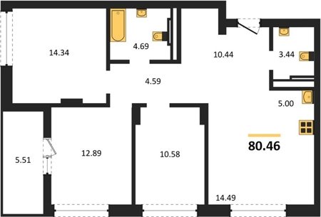 Площадь от 80.03 м2