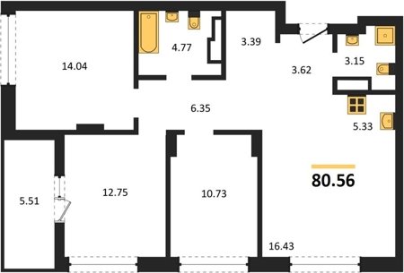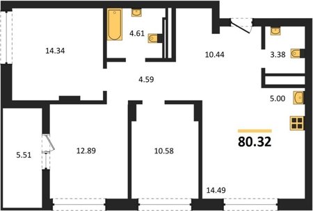 Площадь от 80.32 м2